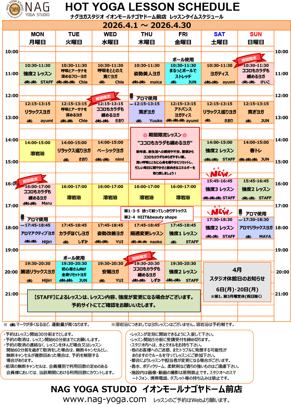 | スタジオ | ナグヨガスタジオ イオンモールナゴヤドーム前店 |